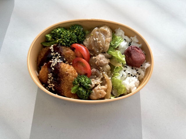ごはんやおかずをひとつの箱に詰めて、持ち運ぶ食事です。